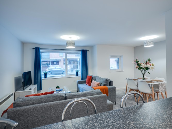 Situated on the outskirts of Castlefield and close to Deansgate Square, this spacious 1 bedroom ground apartment comfortably sleeps 2 guests perfect for friends and couples staycations. With free secure parking, the flat is conveniently located with excellent transport links to Manchester City Centre to explore all the city has to offer.