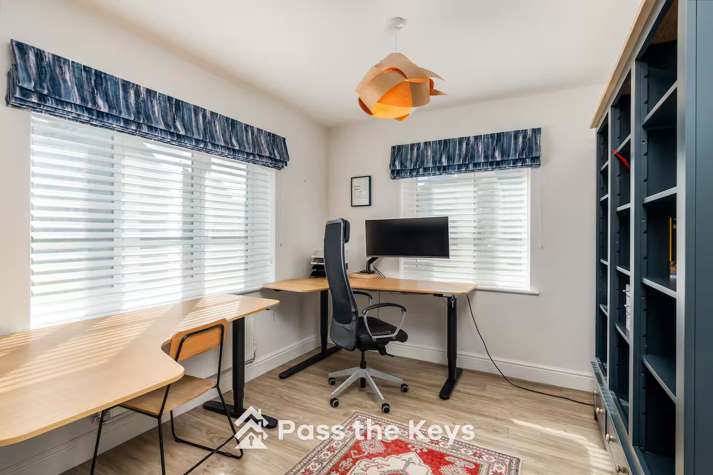 Welcome to Monk’s Walk – a spacious family home nestled in the quiet countryside village of Marcham, but still only a short commute into Oxford City Centre. Perfect for families or small groups of friends. The property benefits from a good sized garden, with outdoor seating and a decking area, the front drive has parking for two cars. A large dedicated workspace is also a key benefit. It is the ideal base for a countryside getaway or a working holiday in close proximity to Oxford.
