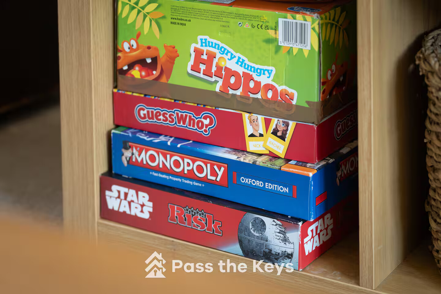 Cosy Living Area– The living room offers plenty of comfy seating, a large Smart TV, Piano and children’s games