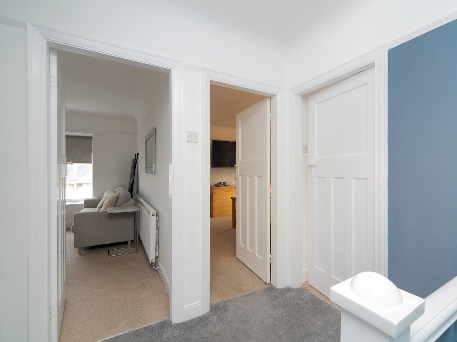 As you step into the house, you’ll find a cozy sitting room to the left, featuring a cozy corner sofa and a warming log fire. Perfect for relaxing after a long day exploring the coastal trails.