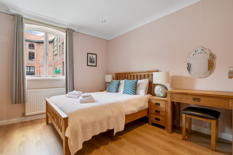 The main living space has a dining table and chair, and a comfy corner sofa which is perfect for relaxing on after a busy day exploring the city. There’s a Smart TV with Netflix application installed so you can still catch up on your favourite series whilst on holiday.