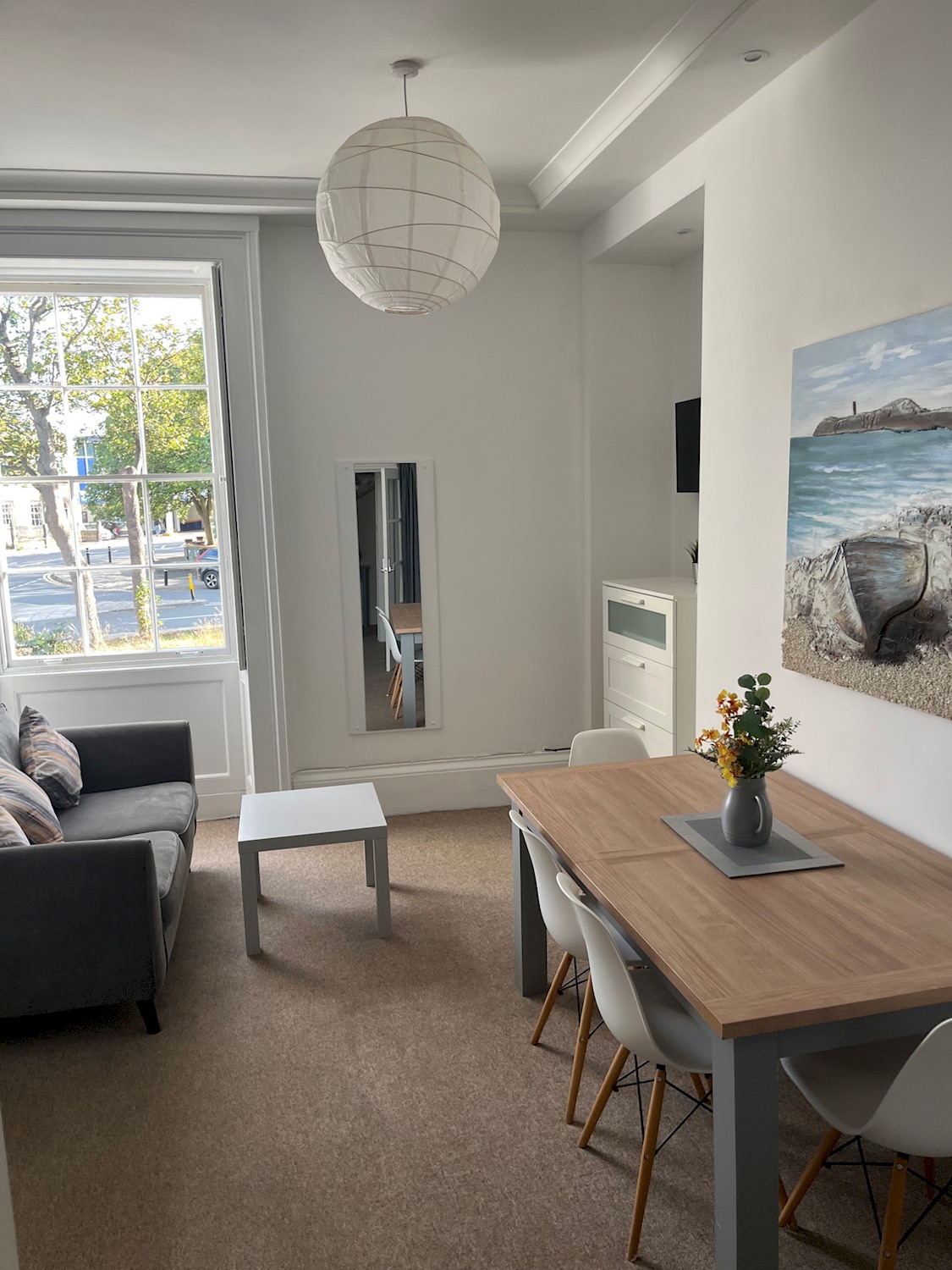 Living Room: Bright, spacious lounge with comfortable seating and smart TV