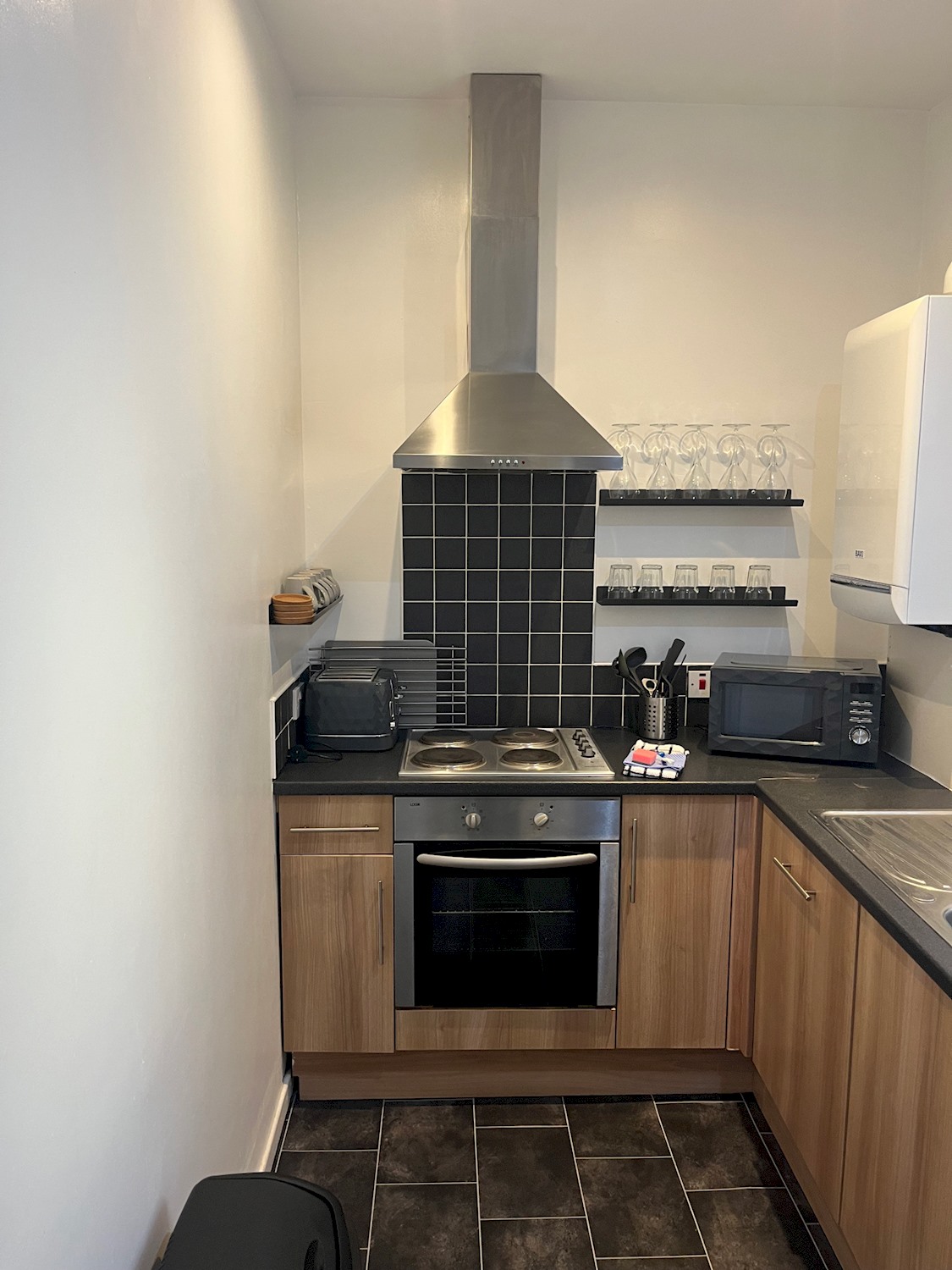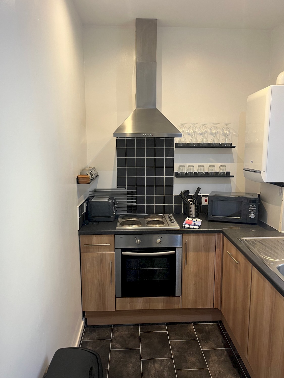Kitchen: Fully equipped with oven, hob, microwave, fridge-freezer, kettle, toaster, and all essentials