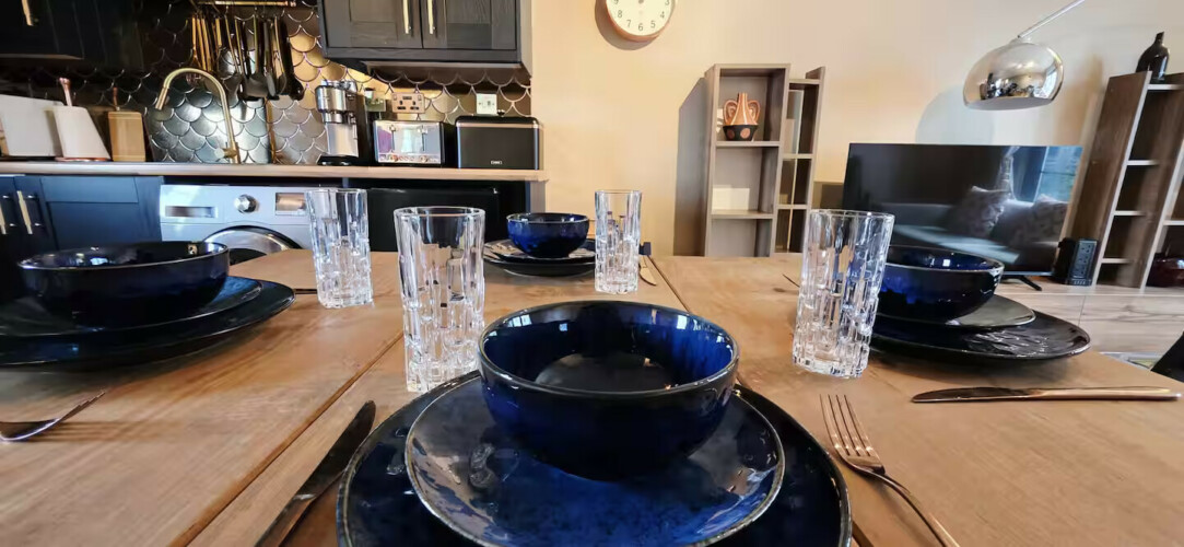 Inside, you’ll find a modern open-plan living and dining area perfect for relaxing or socialising, while the fully equipped kitchen includes a fridge/freezer, microwave, oven, kettle, cooker, and all the cookware and kitchen utensils you’ll need to make home-cooked meals.