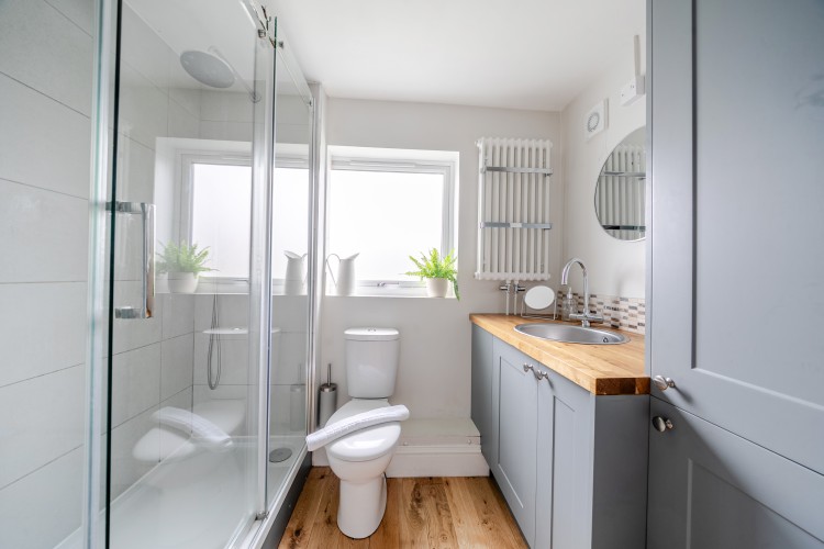 Bathroom 1: Walk-In Shower, WC & Basin / Ground Floor