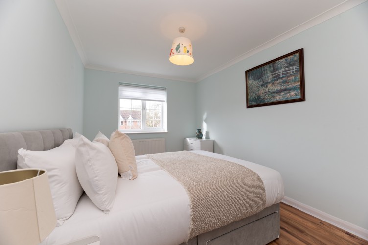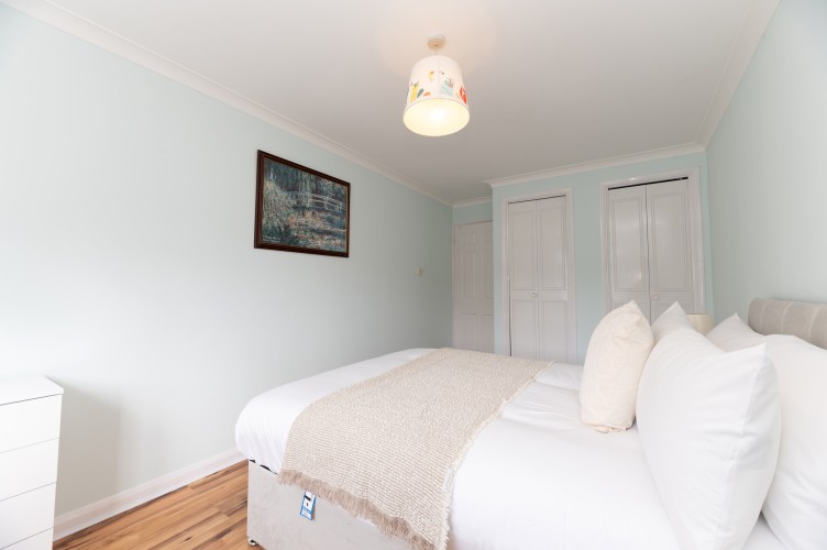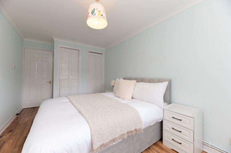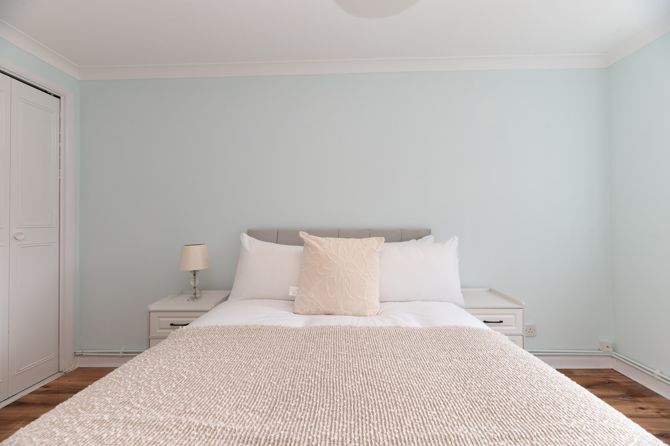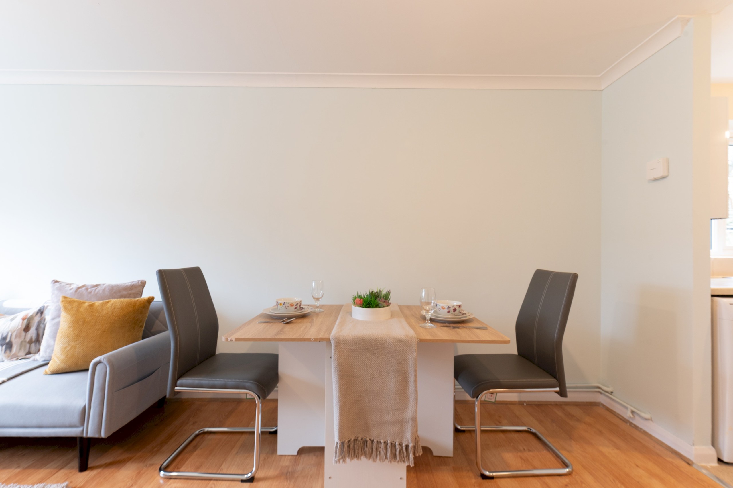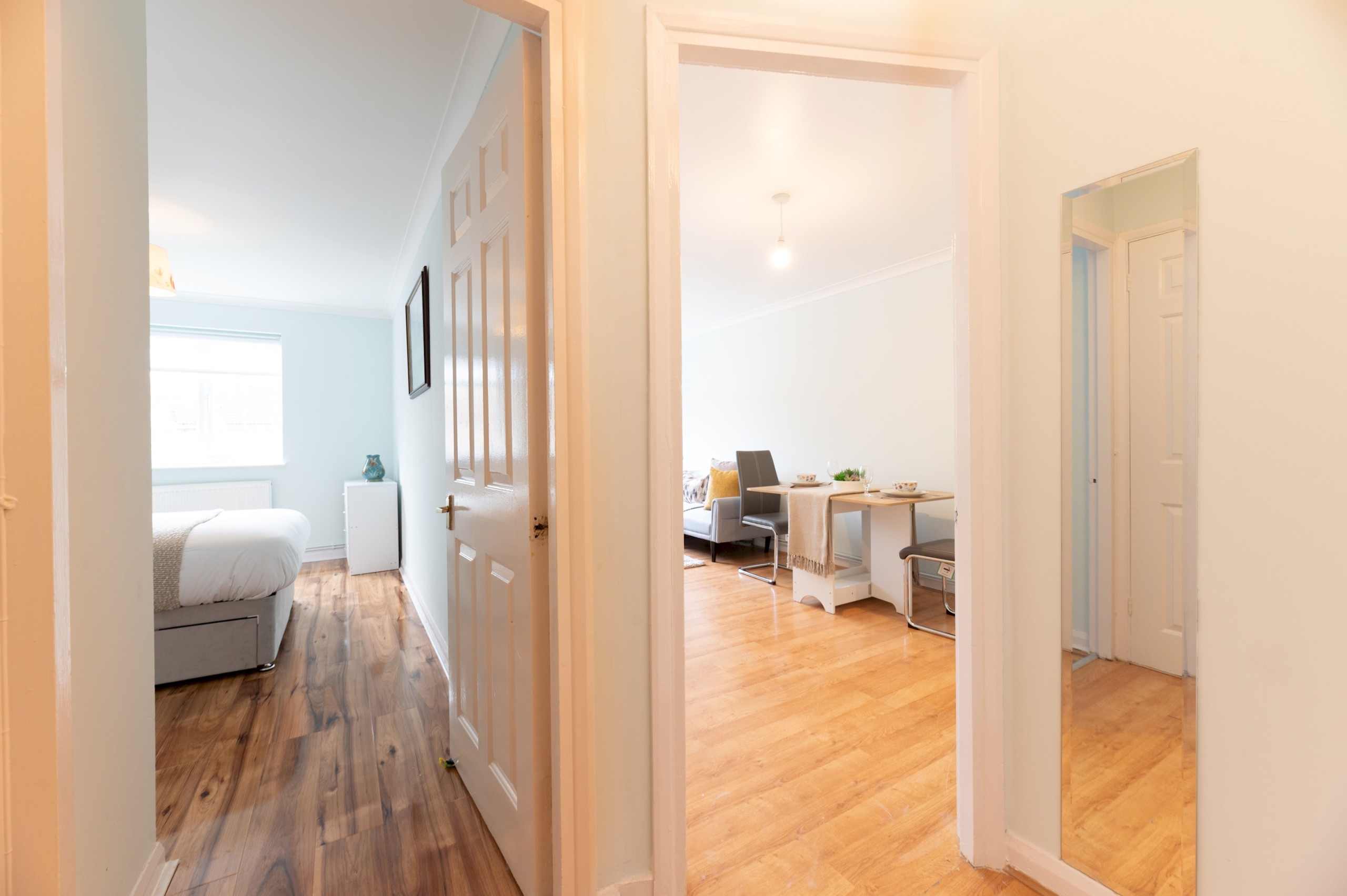 The separate bedroom offers a cosy double bed with fresh linens and ample storage, providing a calm and restful retreat. The bathroom is clean and well-maintained, stocked with towels and essentials to ensure a smooth stay.