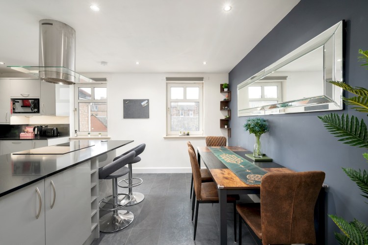 The apartment is located on Sinclair Place, a quiet residential street in Dalry, just west of Edinburgh city centre, perfectly positioned for both sightseeing and business trips.