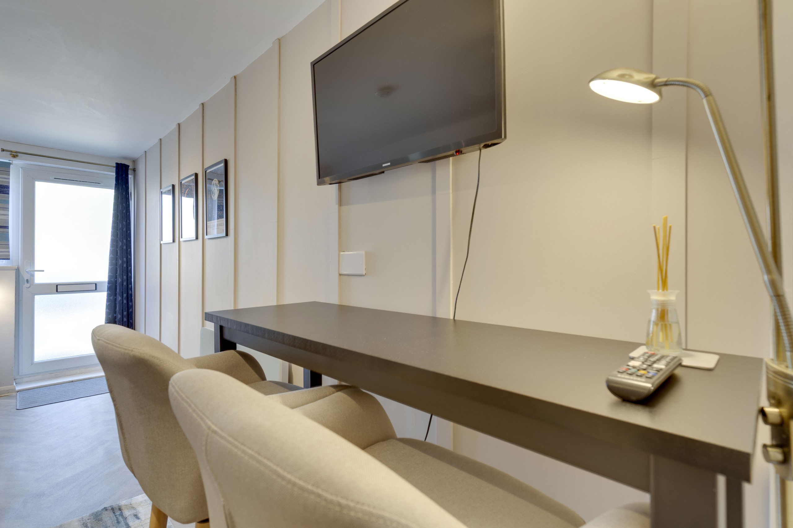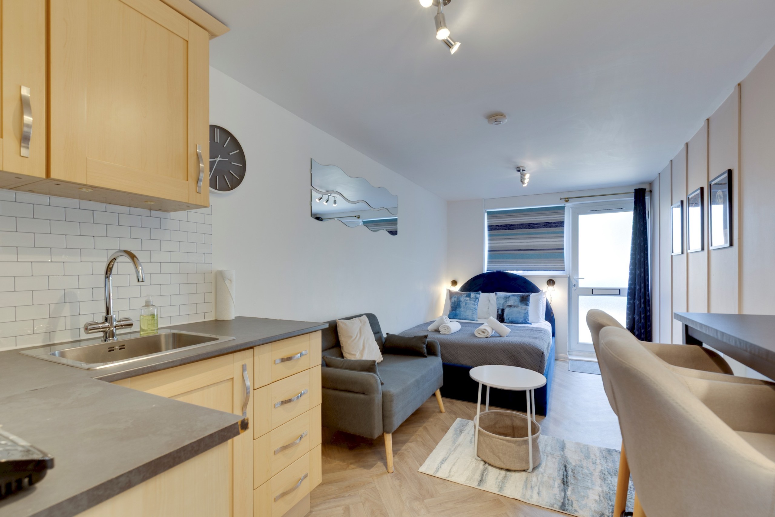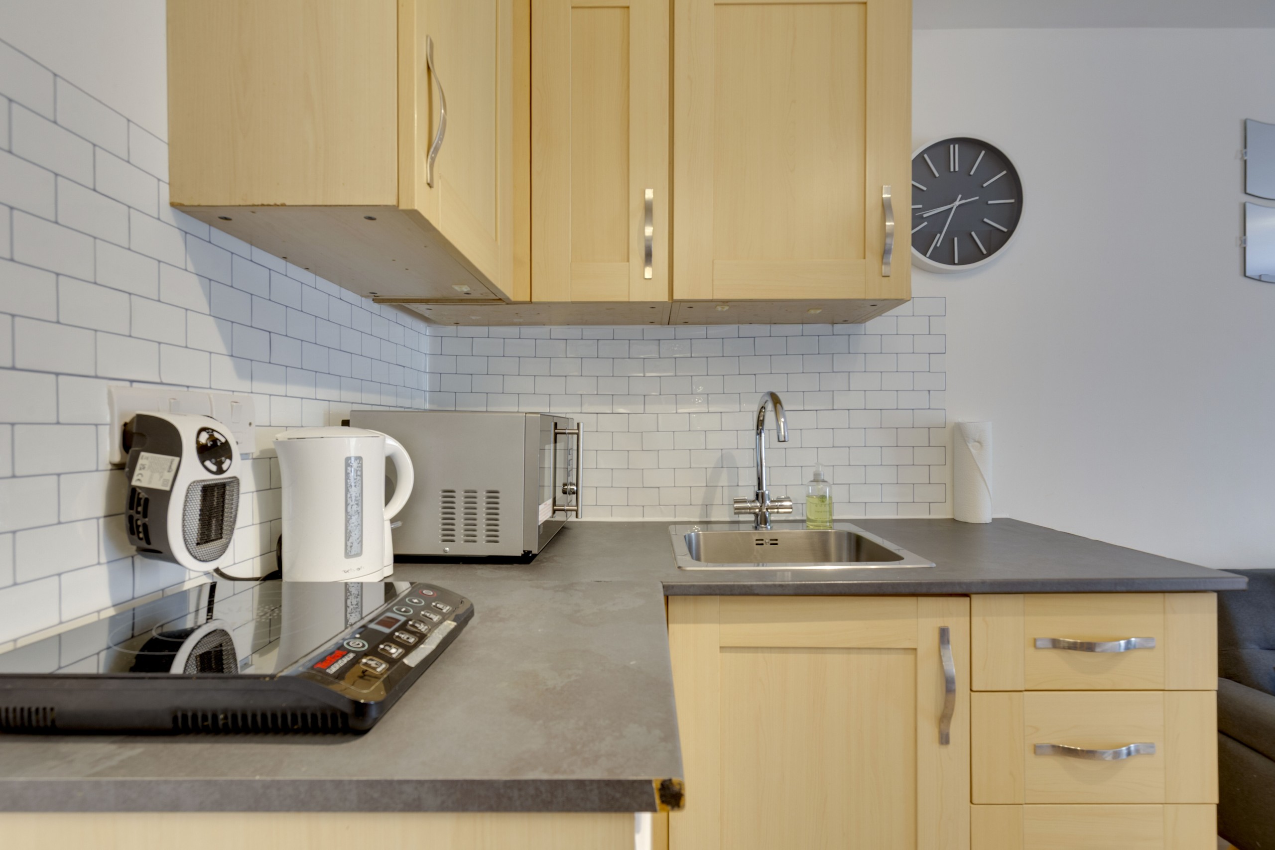 An open plan living area with a two-seater sofa, and a breakfast bar for eating or to use as a workspace, is available for guests. Superfast wifi for work or study, or to stream your favourite channel. An enclosed private garden patio area with outdoor furniture is available to enjoy those sunny days.