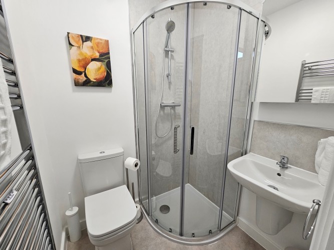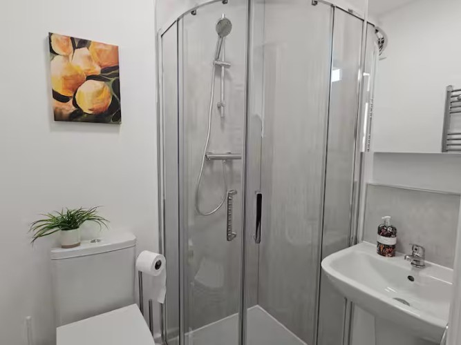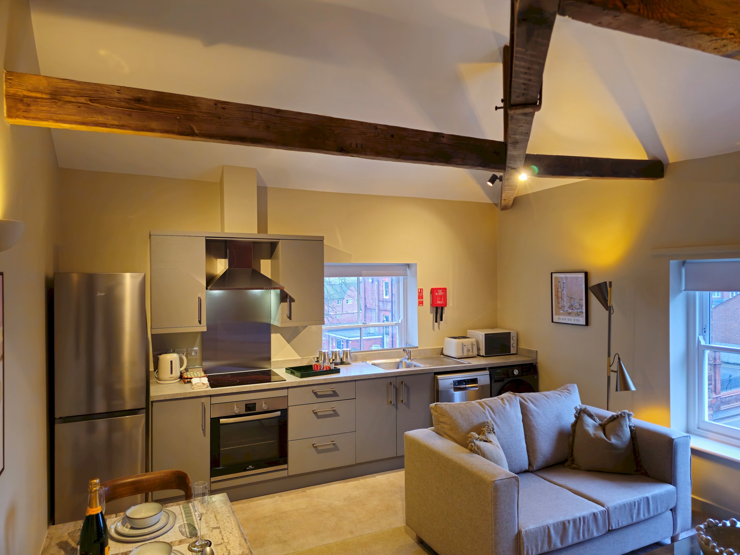 Be one of the first to stay in this brand new converted 1 bedroom, penthouse, second floor apartment near Shrewsbury town centre, and just a 10 minute walk to the train station. With free parking for 1 car, enjoy bright open-plan stylish living with a lounge room, kitchen and dining space, plus a sleek shower room and a super comfy double bed dressed in quality cotton linen.