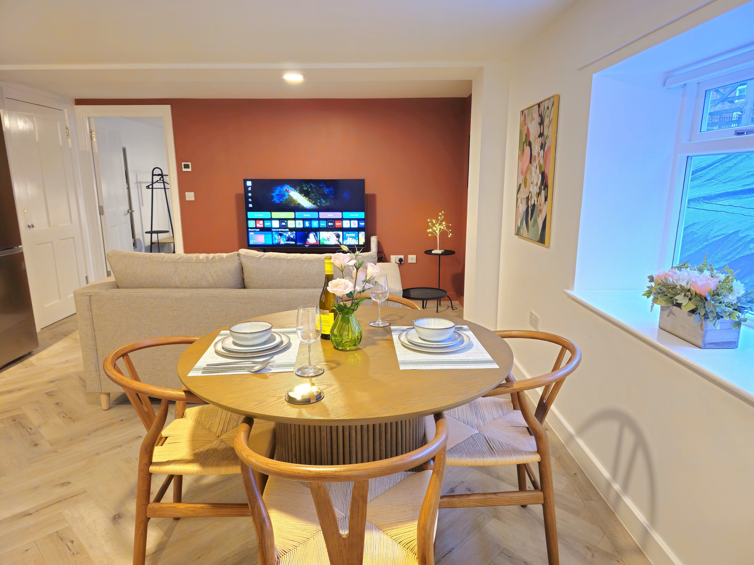 With free parking for 1 car, enjoy bright open-plan stylish living with a lounge room, kitchen and dining space, plus a sleek shower room and a spacious bedroom with super comfy king size bed, dressed in quality cotton linen.