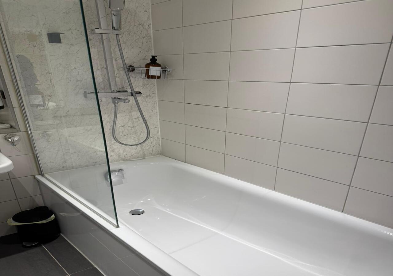 The bathroom has towels, bath mats and travel size toiletries provided included shampoo, shower gel and soaps