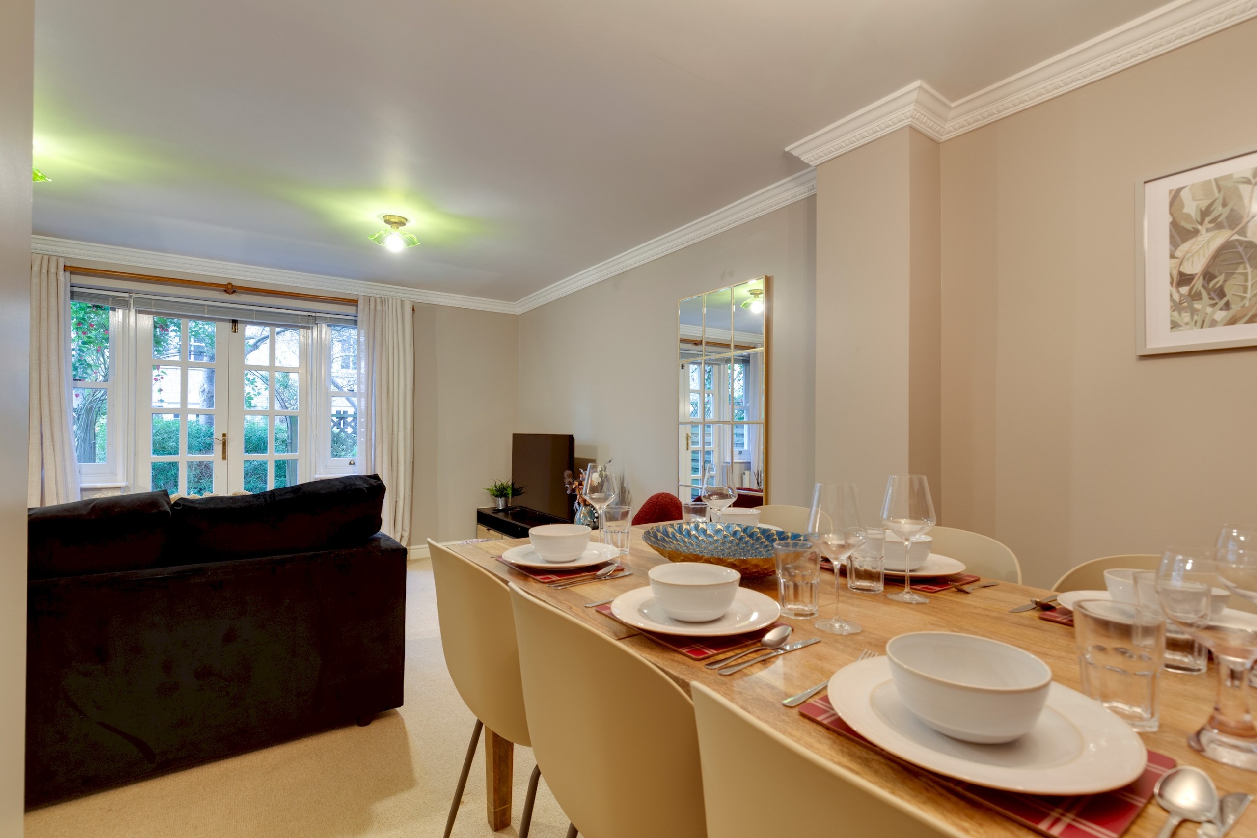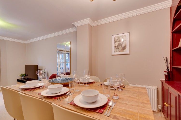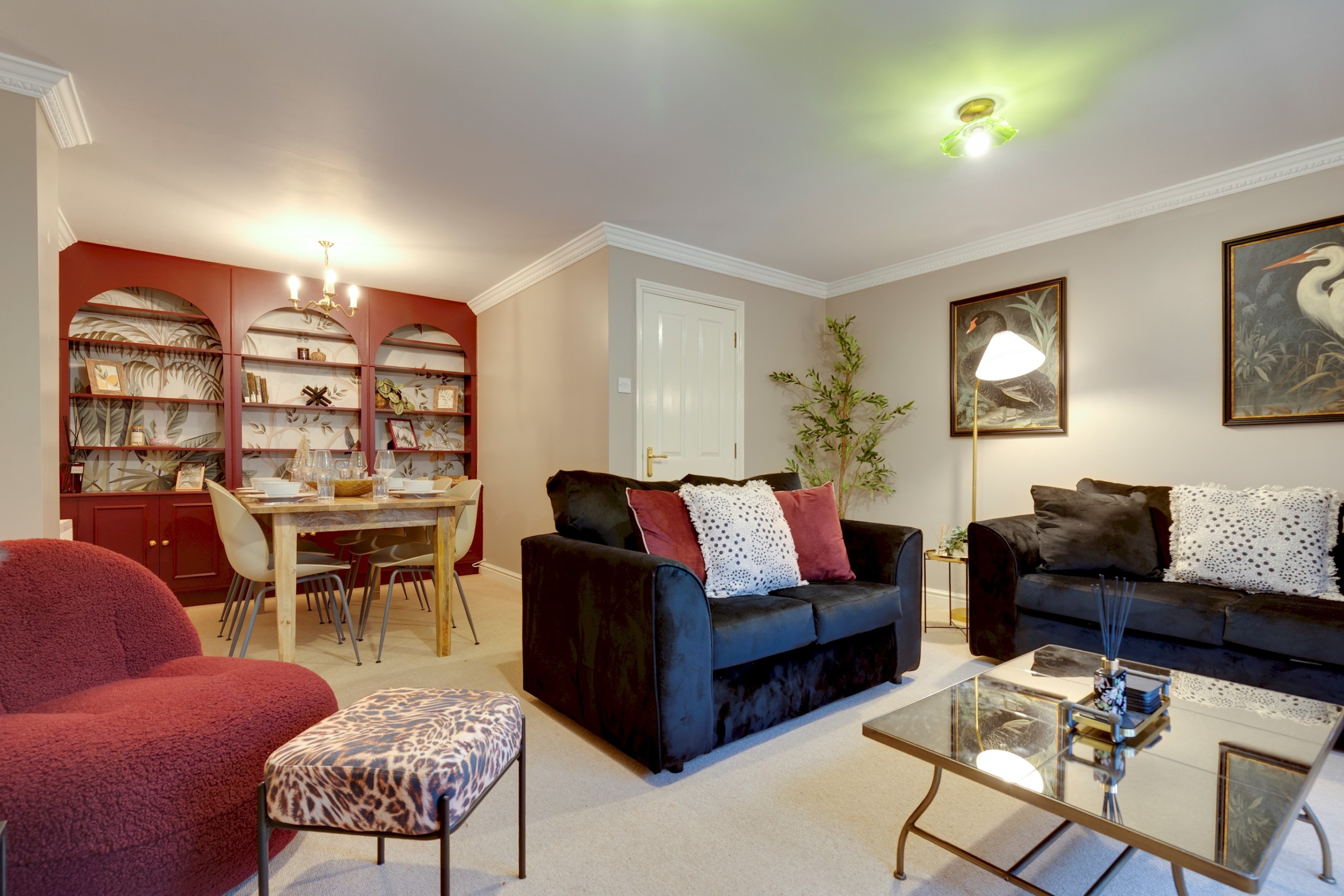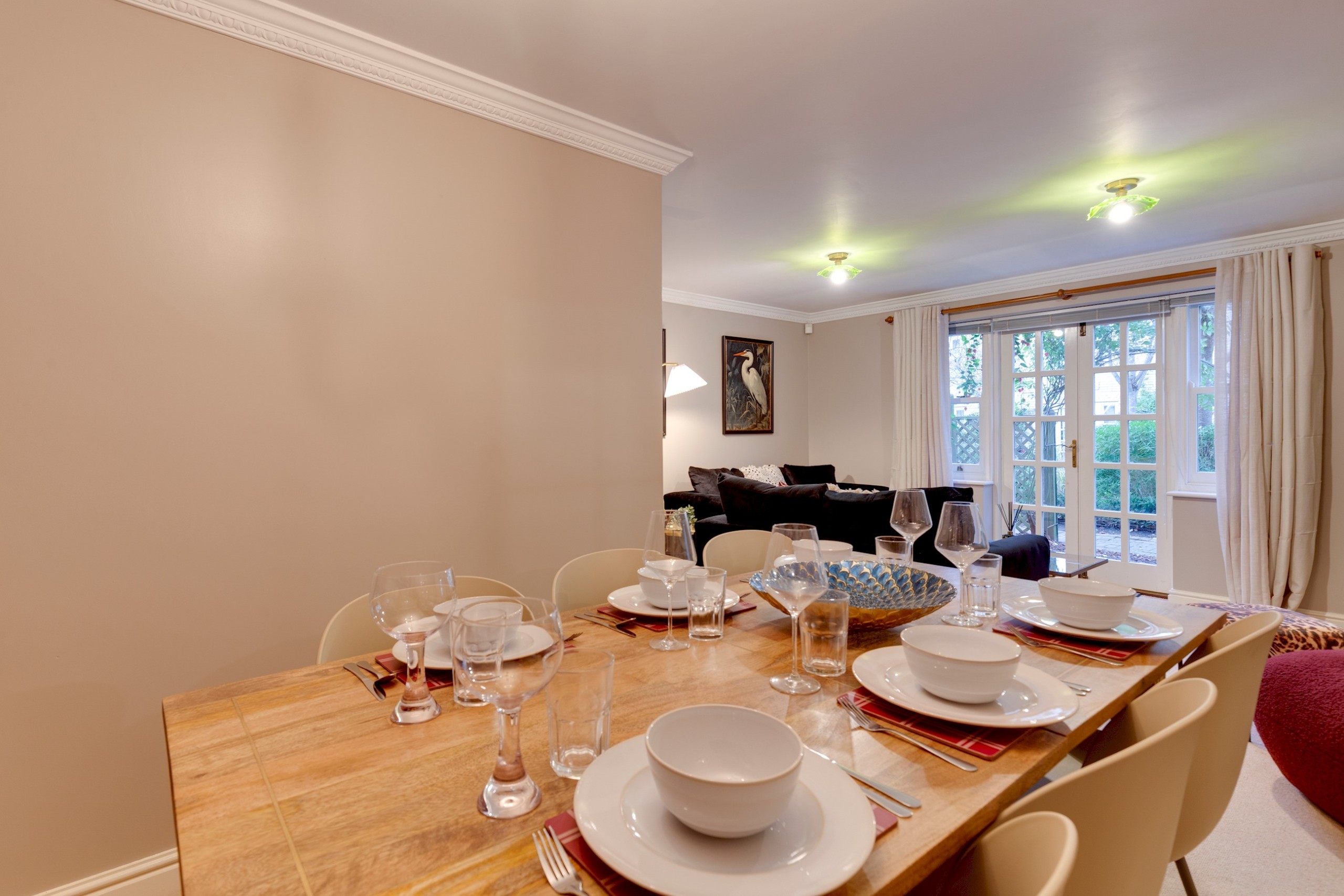 A well appointed open plan living/dining area with a 50 inch Smart TV with all your favourite TV and Streaming channels available to watch. Own account required for streaming channels. There is also a dedicated working desk in the Second bedroom to work from and a fast wifi connection. A small outdoor patio space with outdoor furniture, is connected to a large communal garden.