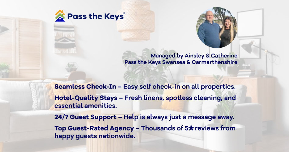 At the helm of Pass the Keys® Swansea and Carmarthenshire is Ainsley & Catherine Thomas. After running several successful businesses in the area one of which is an award-winning cleaning company the only service we did not offer was marketing and managing our holiday lets. This steered us to research this area which lead us to Pass the Keys and their professional award-winning systems and franchise model.