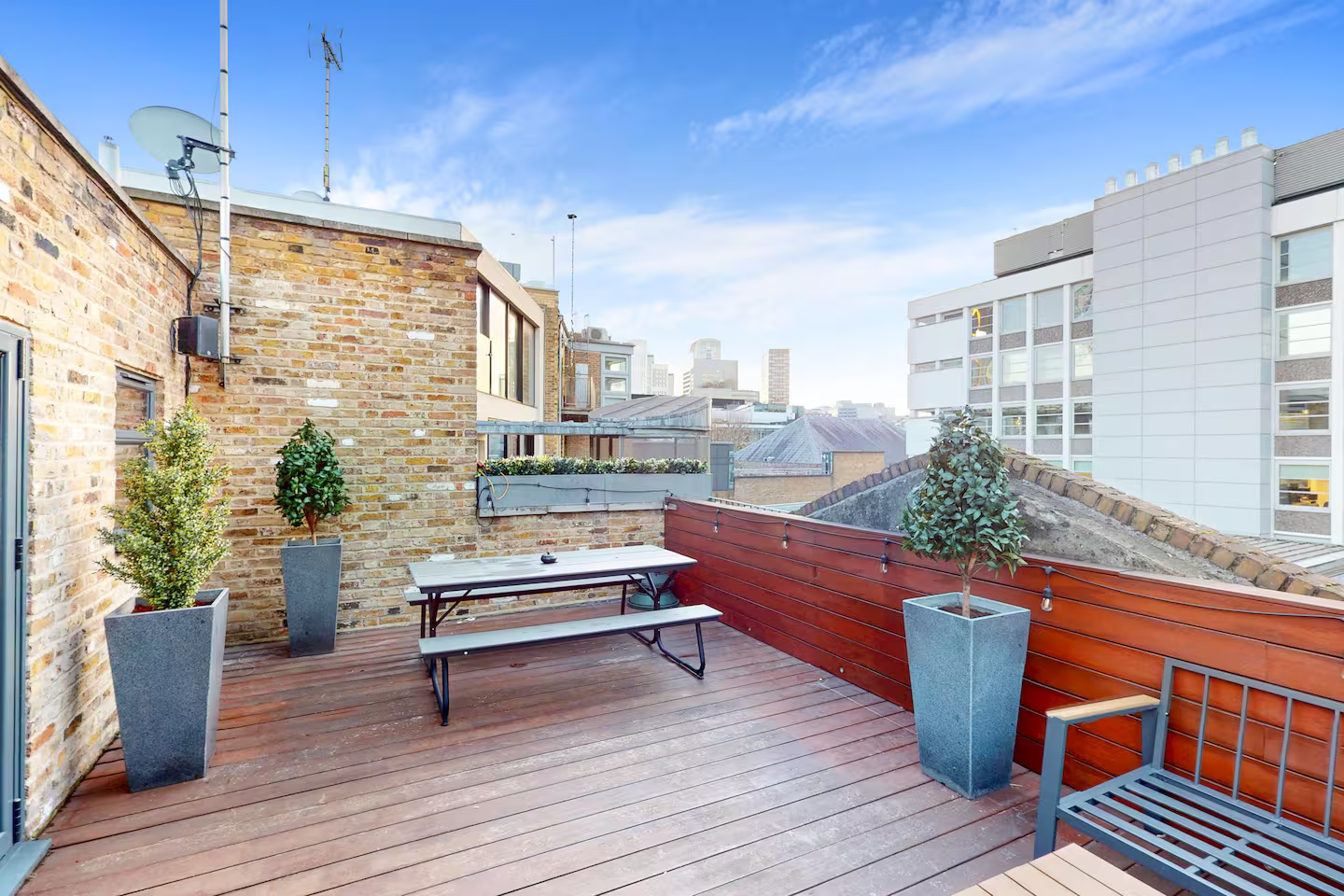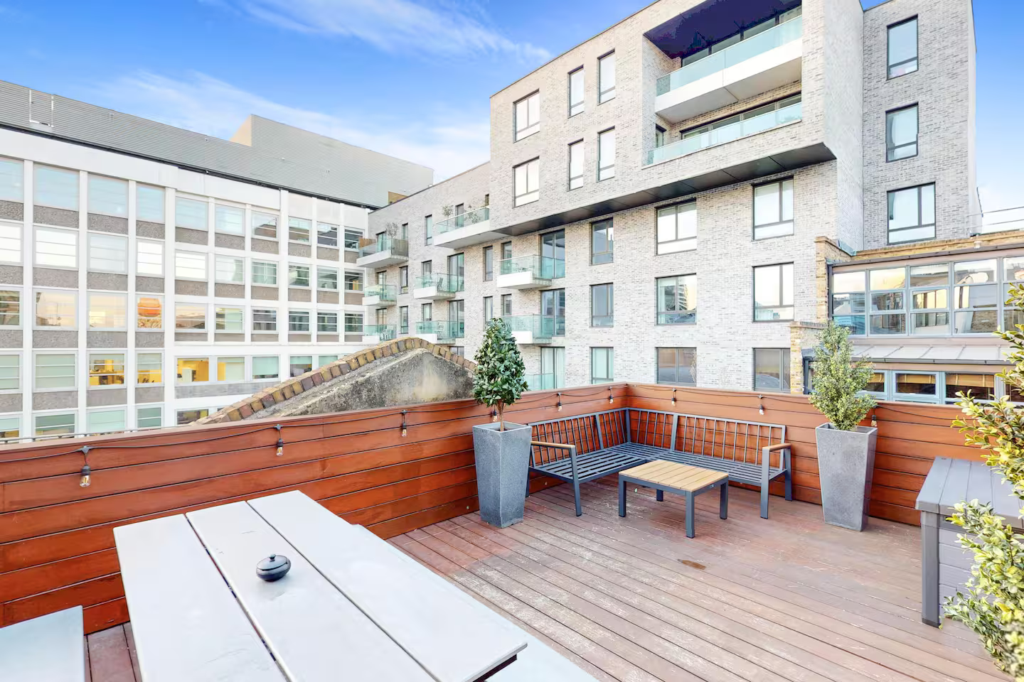 In the heart of Shoreditch, this elegant two-bed penthouse combines industrial charm with modern comfort. Perfect for families, friends, or business trips, it offers soaring ceilings, warm brickwork, and a private roof terrace overlooking London’s skyline — moments from Old Street, Spitalfields Market, and the creative pulse of East London.