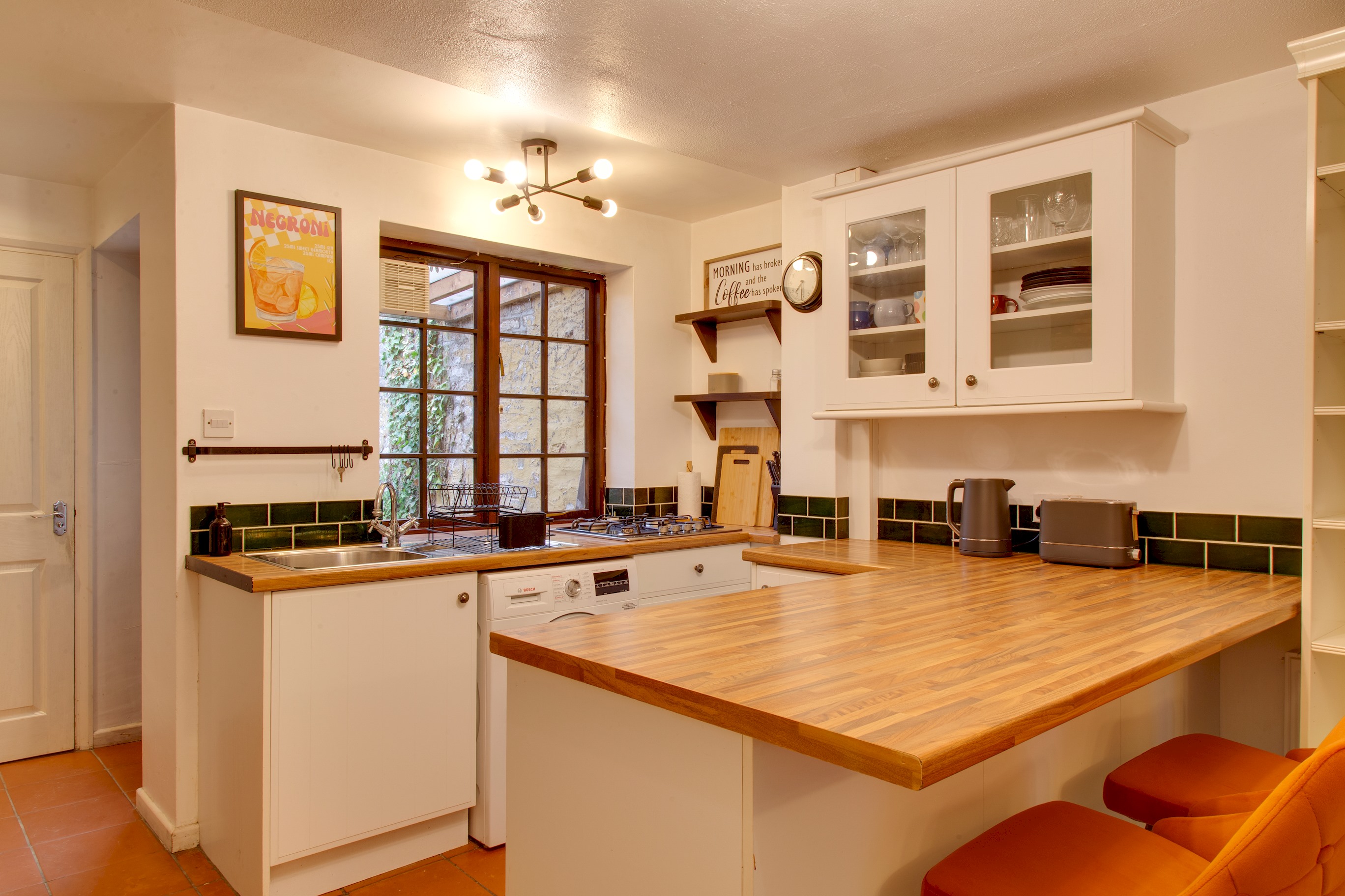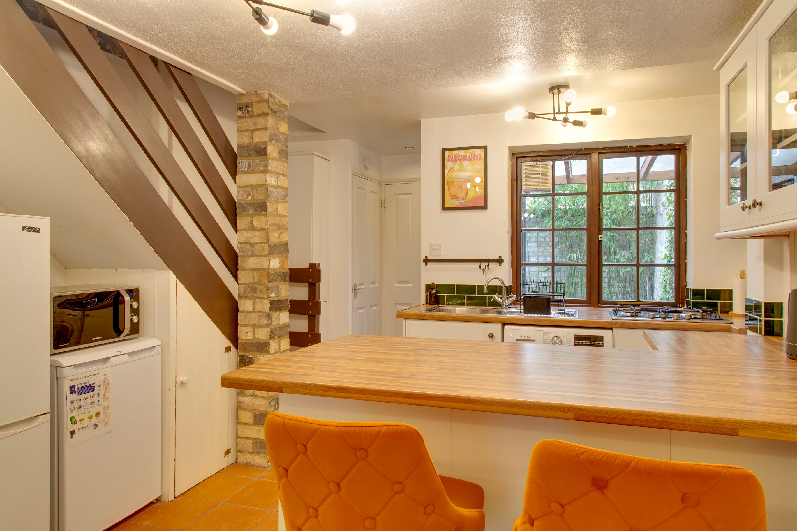 Well appointed open plan living/dining area with a flat screen 40 inch Smart TV, and all your favourite streaming channels installed – Netflix, Amazon Prime, Youtube and Disney Plus. Own account required for viewing. Private office with desk and chair available to work from home, with free Wifi available to use. A fully enclosed private courtyard.