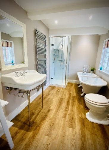The third floor houses two further bedrooms, both with double size beds. This floor has a large family bathroom with roll top bath and separate shower. All the bedrooms have lovely views across the ruins of Old St Chad’s Church Yard and its mature trees.