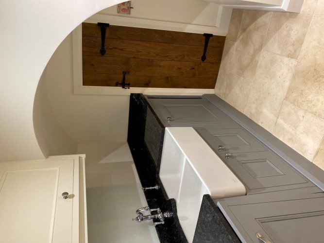A fully equipped large basement kitchen with a Range Master and ample table space is perfect for meals and gatherings. A utility provides extra freezer space and storage. There’s a little snug sofa in the arch for comfy keeping the cook company!