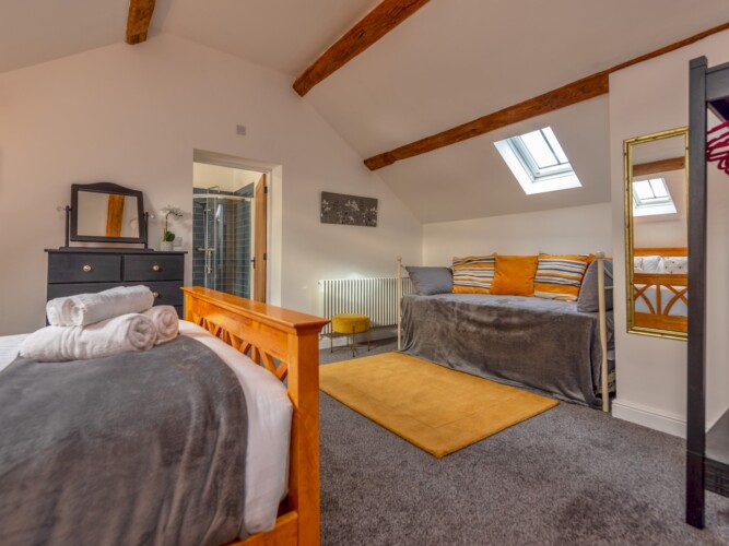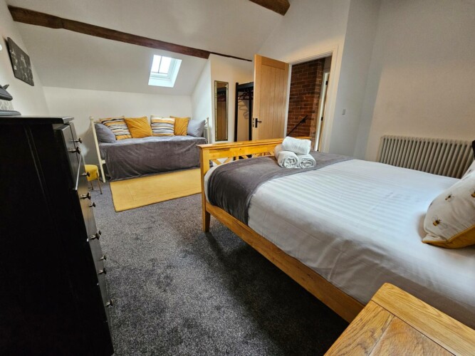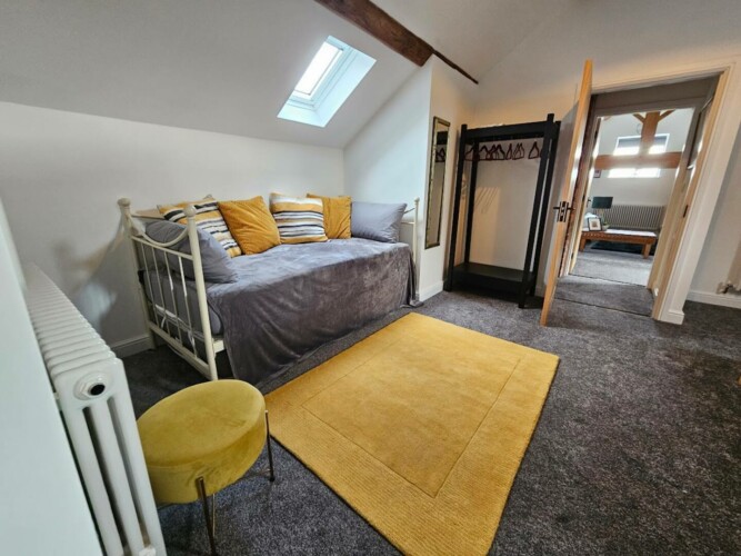 – Bedroom 1: has a zip link bed either two singles or a superking. There is a baby changing unit in the bedroom. The bed will be made up as a superking by default, if you would like two single beds, please let us know at least 48 hours ahead of your bookings so that we can make that happen for you.