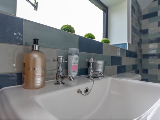 – The kitchen itself is a joy to cook in and features many, if not, all of the amenities you will need during your stay. This includes large appliances such as a range cooker, dishwasher, fridge freezer, and a Belfast sink. For moments less formal, guests can relax at the breakfast bar with high stools. For your convenience there is a washing machine should you need to do any washing during your stay.