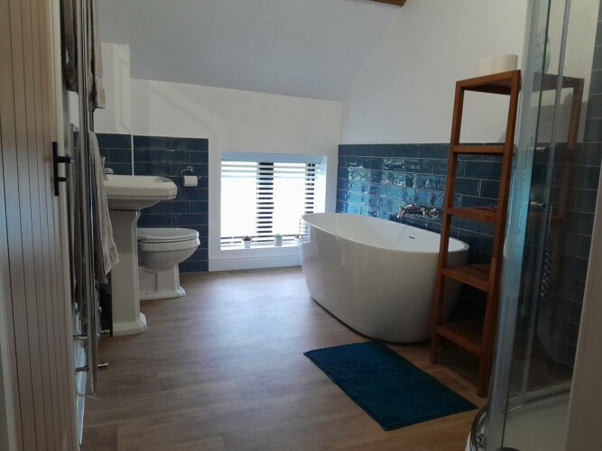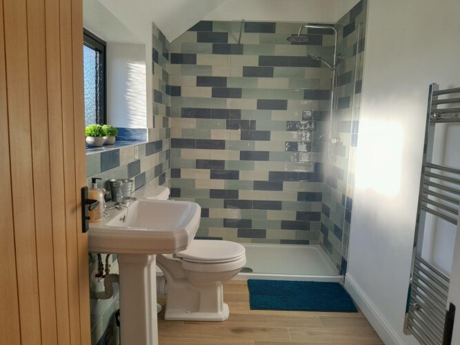 – Bedroom 2: has a double bed. The ensuite has a shower, sink, and wc.