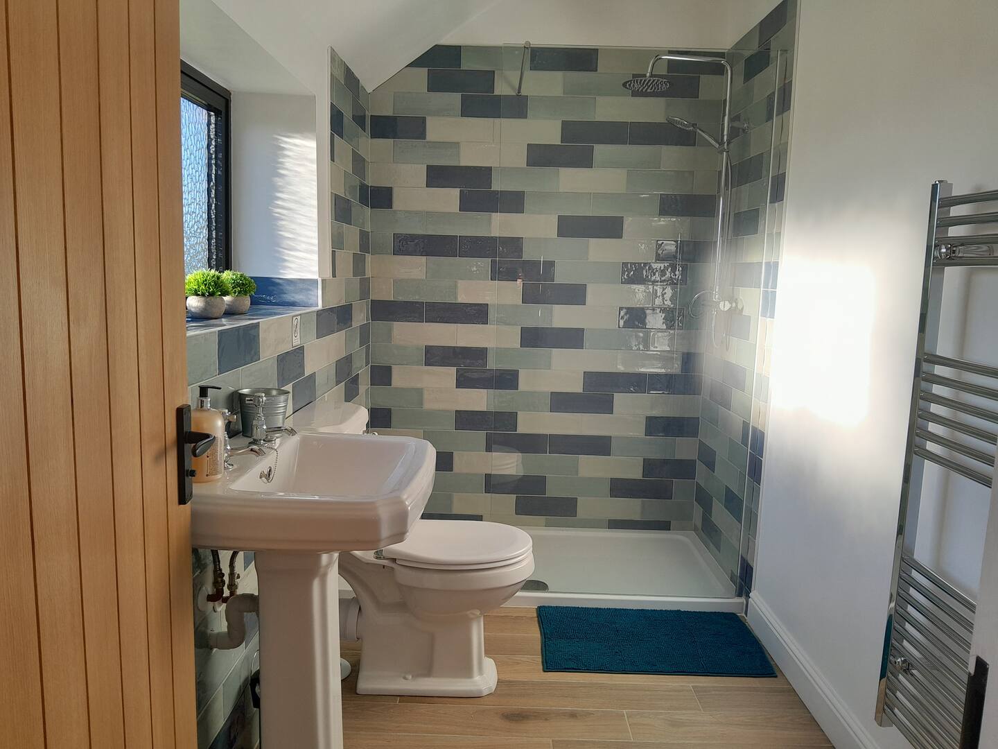 There is an ensuite with a shower, sink, and wc.
