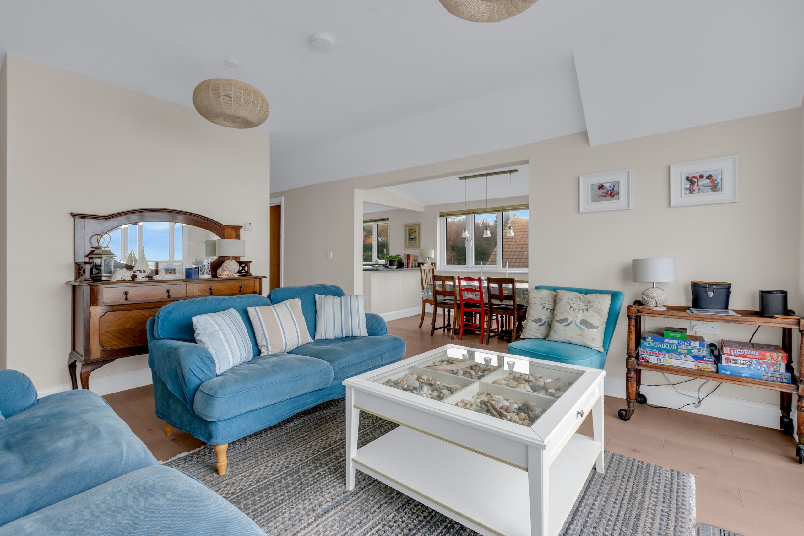 The bright open-plan living area forms the heart of the home, seamlessly blending a comfortable lounge with a fully equipped kitchen and a spacious dining area, creating a warm and social environment perfect for relaxing, dining, and spending quality time together. The kitchen is thoughtfully fitted with all essential appliances including an oven, hob, microwave, fridge-freezer, dishwasher, kettle, toaster, and well-stocked kitchen drawers, making it easy to prepare everything from simple breakfasts to full family meals, while the generous dining area offers ample seating for shared meals and evening gatherings.