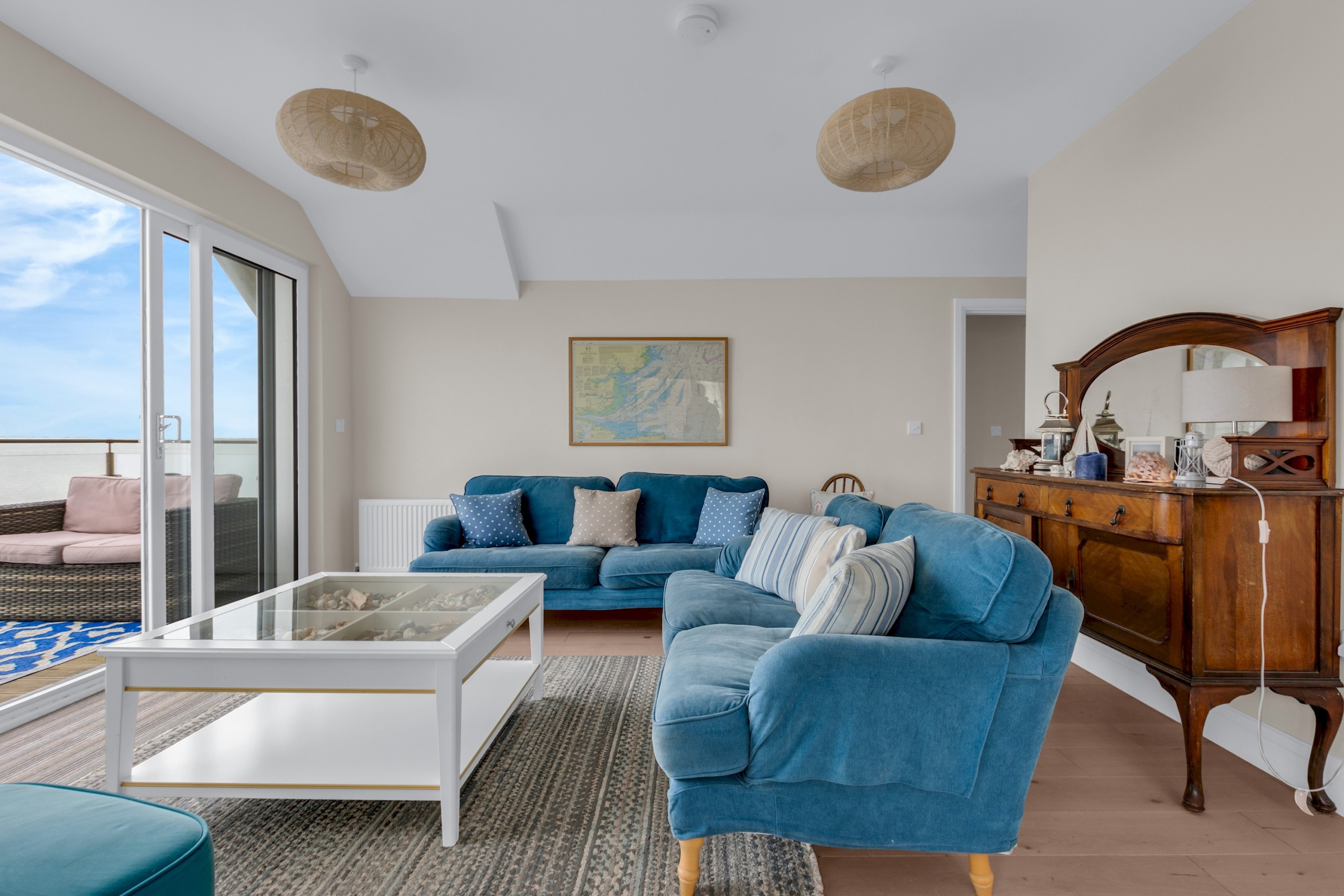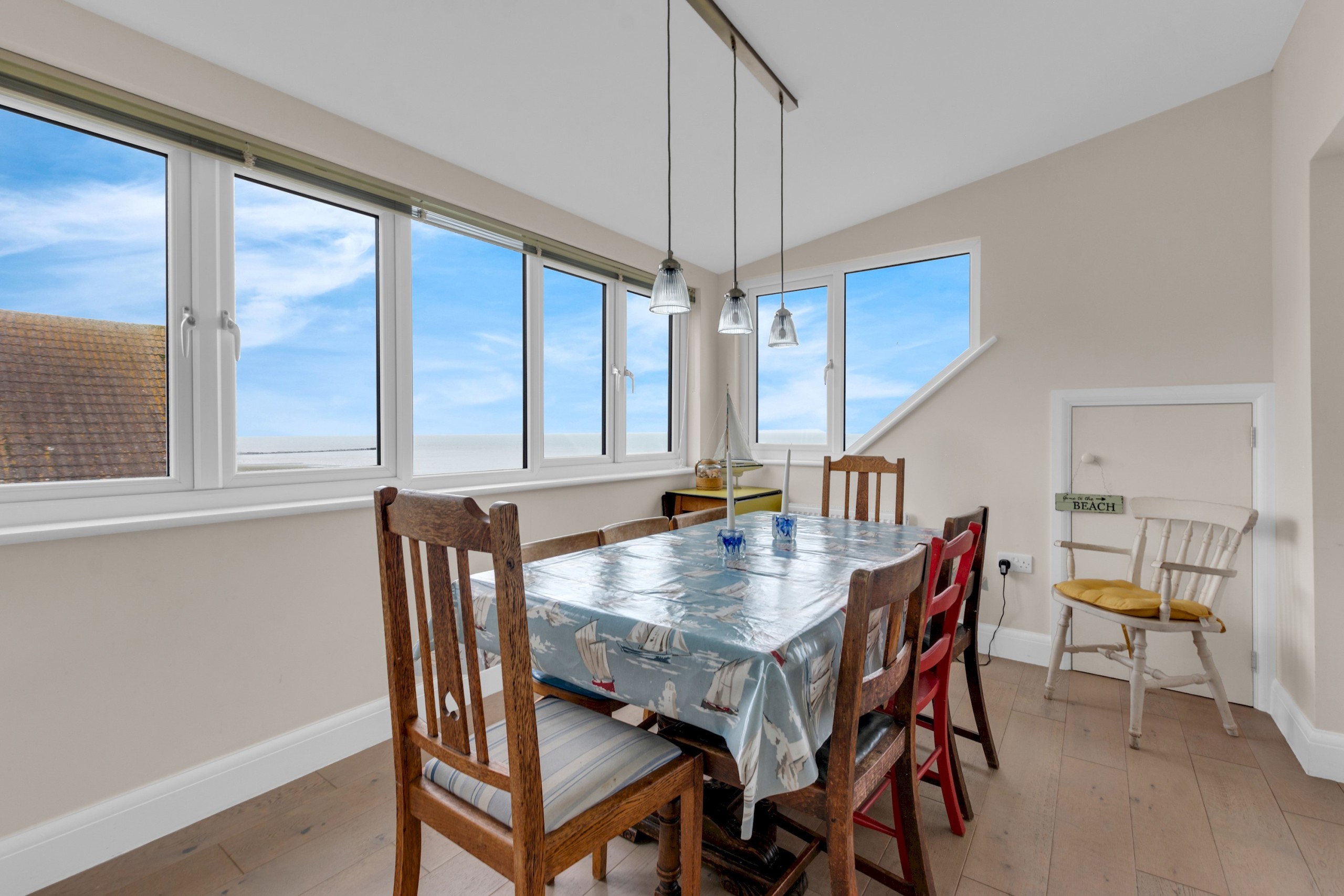 Located in a prime seaside setting, this beautifully presented first-floor apartment offers an ideal coastal retreat for families, groups, and longer stays, combining space, comfort, and breathtaking sea views throughout.