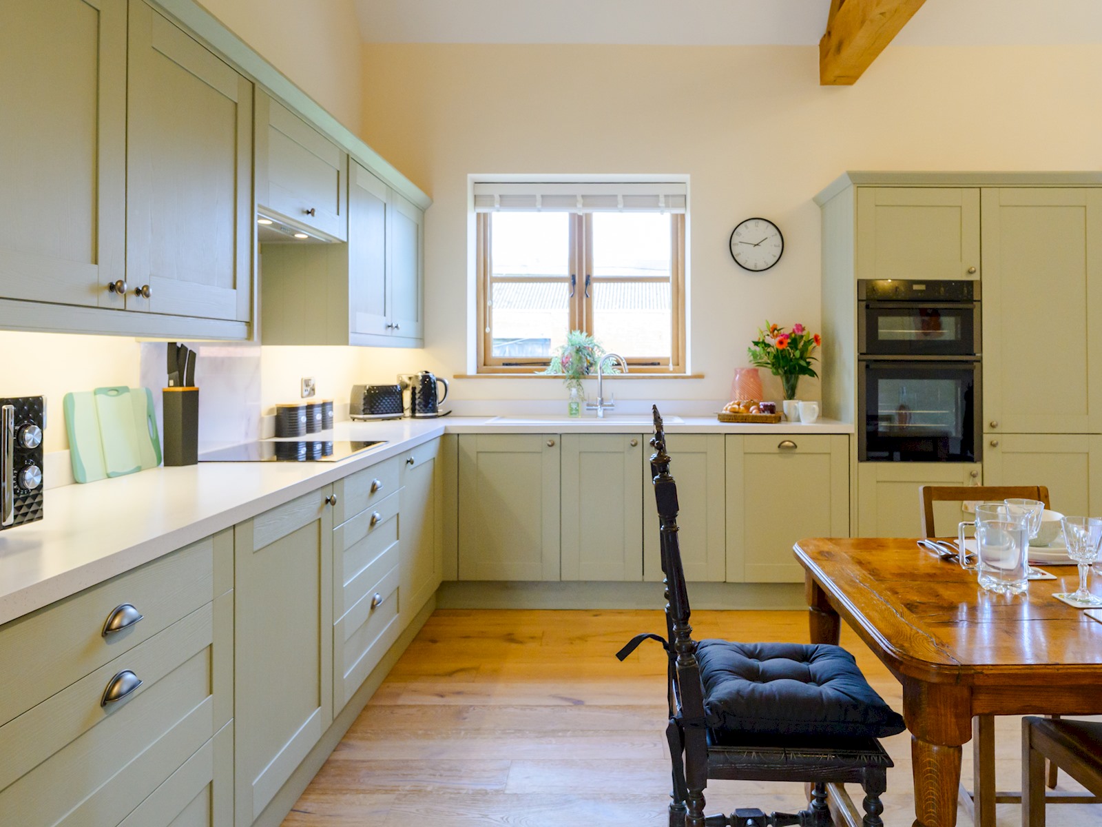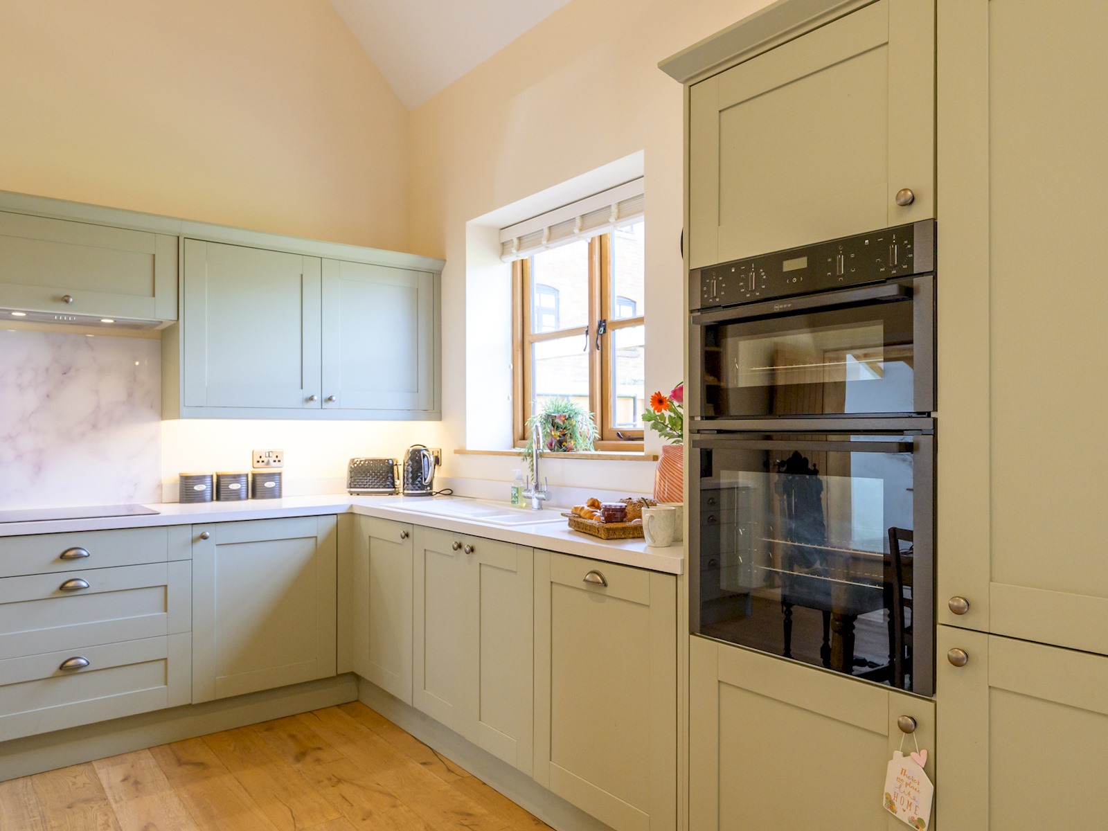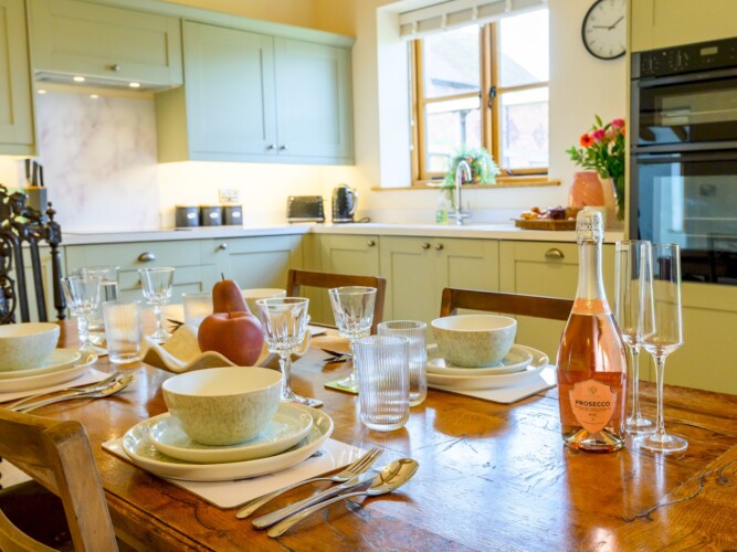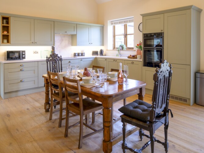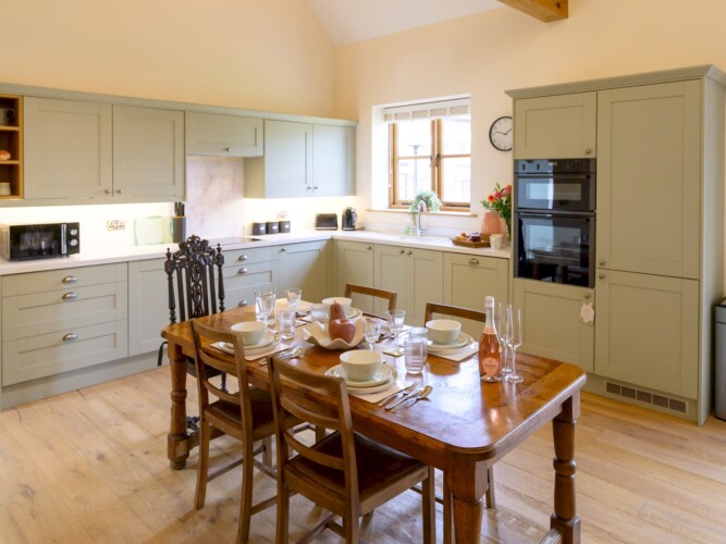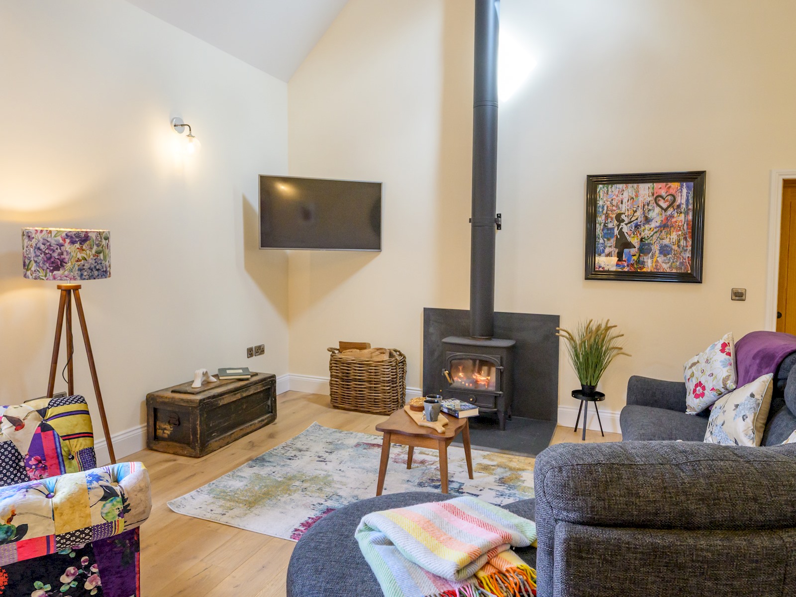 The barn features an open-plan fully equipped kitchen, spacious dining area, and a cosy living room where you can relax after a day exploring the Shropshire hills.