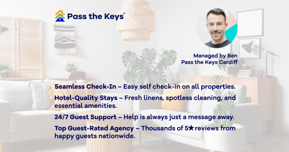 Hi, I'm Ben Simmons, owner of Pass the Keys® Cardiff & Newport. I am very excited to provide expert holiday let management to the cultural city and vibrant towns of Cardiff and Newport. If you have a property in Cardiff and Newport and are interested to find out how much you could earn as a short-let host through Airbnb, give Pass the Keys® Cardiff & Newport a call on today.