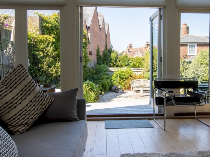 The Studio House – a unique bright, modern 3-bed in the very heart of medieval Rye, just 2 mins from rail & bus. Rare for Rye, it offers soaring ceilings, light-filled rooms, and two private gardens – a sunny courtyard and west-facing dining space. Steps from top restaurants, galleries, boutiques & Camber Sands. The perfect stylish base for exploring Hastings, Battle, Dungeness & vineyards. Book your Rye escape today!