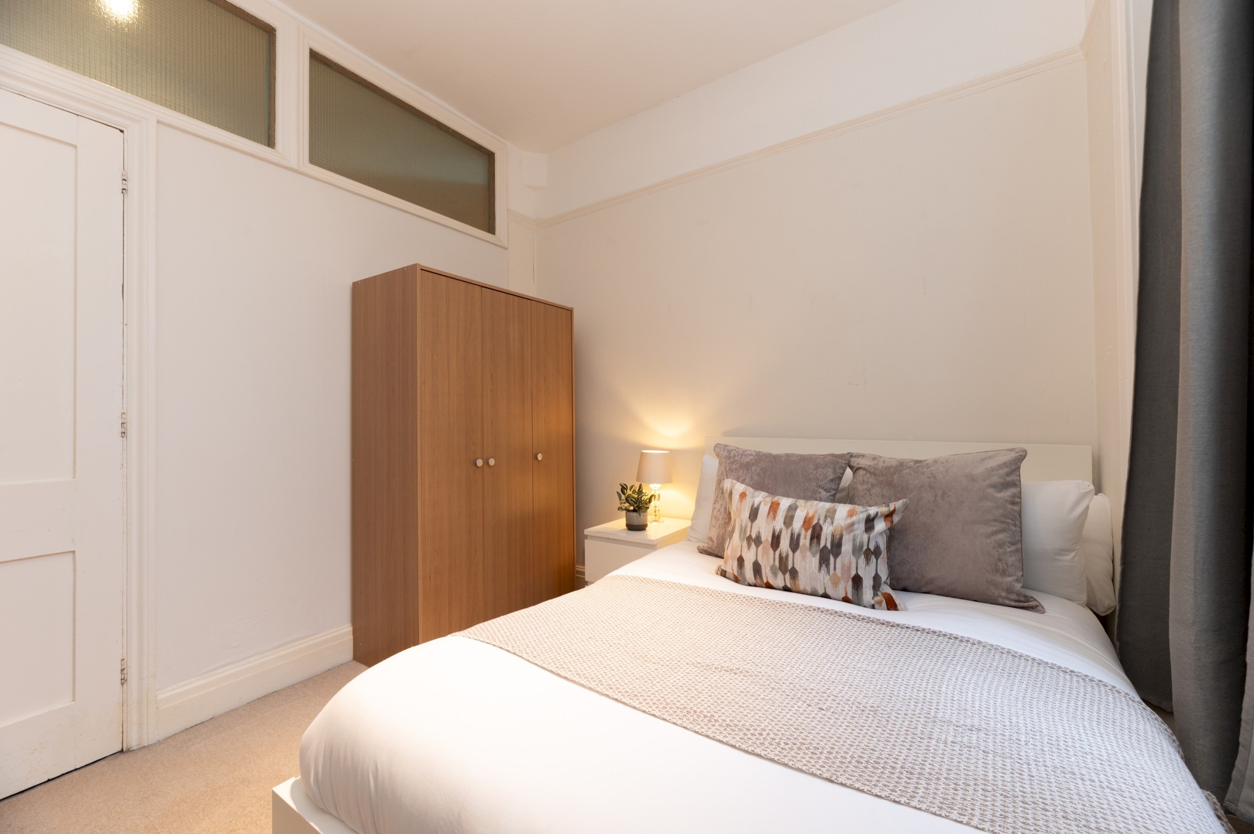 This comfortable two-bedroom basement flat is located in West Kensington, less than a 5-minute walk from West Kensington Station. It offers a practical and well-connected base for professionals, solo travellers, or small groups visiting London.