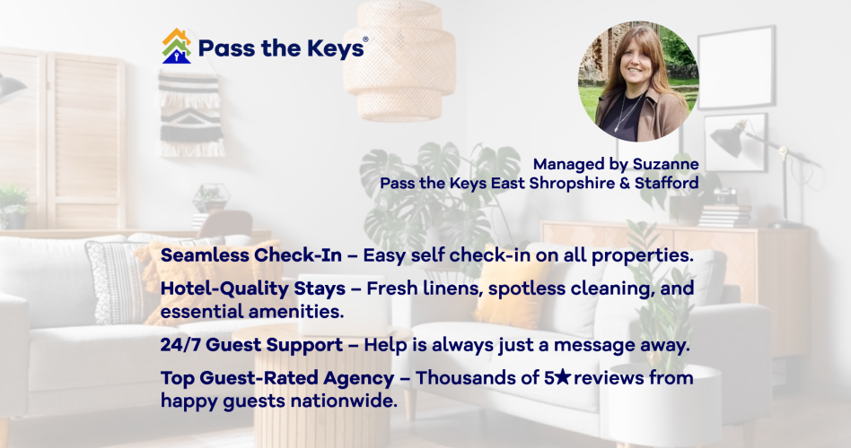 Hi, I am Suzanne, owner of Pass the Keys, East Shropshire and Stafford. Having lived here all my life, I have a true passion for my local area. Being widely known for its world UNESCO site (The Ironbridge Gorge), The Wrekin AONB, and the large concentration of English Heritage and National Trust sites, it is a beacon of history. Having worked in hospitality, property development, and management over many years, my belief in excellent customer service and attention to detail gives me the tools to provide a successful experience for hosts and guests alike.